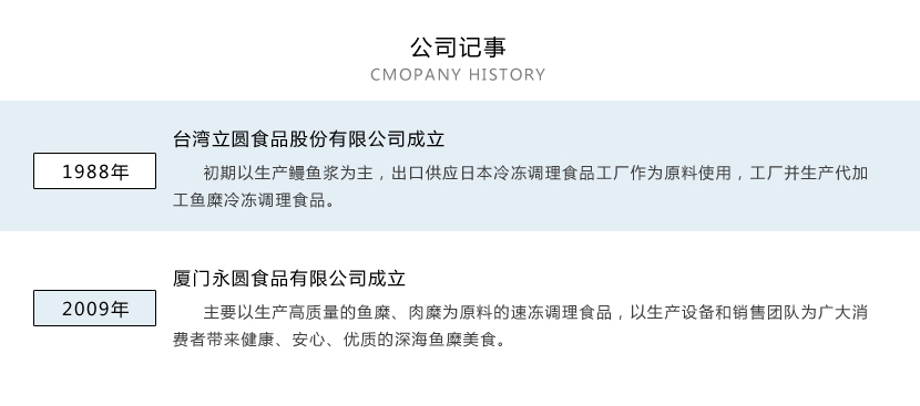 公司于2009年11月取得福建省質(zhì)量技術(shù)監(jiān)督局QS生產(chǎn)許可,并于2010年8月底通過(guò)ISO2200:2005及HACCP等國(guó)際質(zhì)量認(rèn)證。于2011年2月取得CIQ認(rèn)證